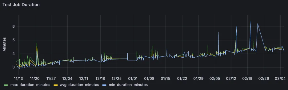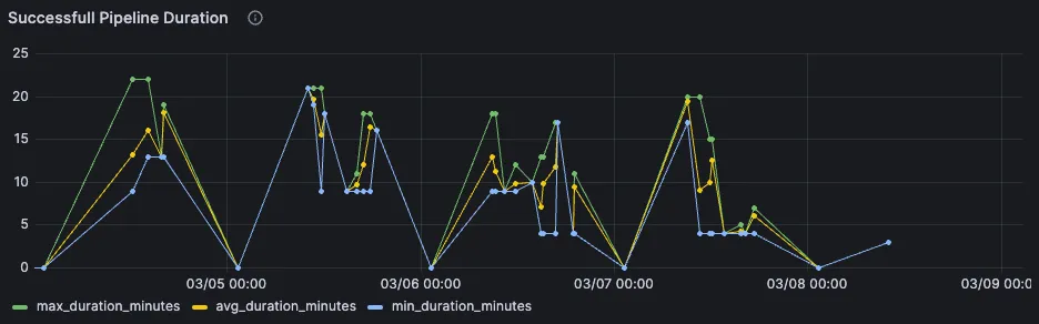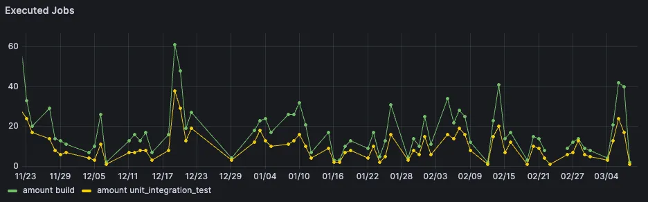 Playing around with job data in Grafana was extremely fun. Browsing around the ingested cicd data with a tool as snappy and optimized as Grafana made for a great experience.
